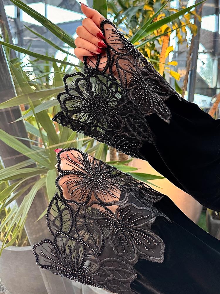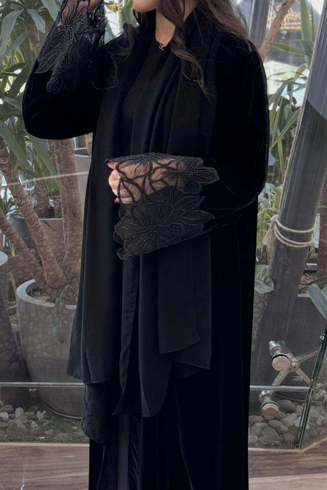عباية مخمل اسود صممت بعناية فائقة لتقديم إحساس بالراحة والجمال في آن واحد.